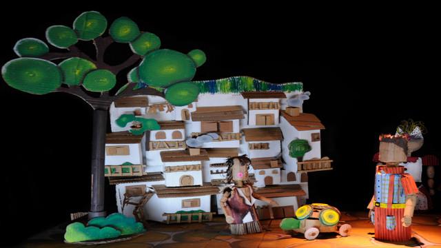 Muñecos, objetos y teatrino son piezas artísticas diseñadas y elaboradas con materiales reciclados que invitan a desplegar los sentidos mediante una composición de imágenes poéticas, música, plástica y movimiento y a reflexionar sobre nosotros mismos y sobre el mundo en el que habitamos, un mundo dominado por el materialismo, en el que poco a poco se ha dejado de lado la fraternidad, la armonía con el universo y toda la esencia que nos hace seres humanos. Creación colectiva a partir del libroMomo de Michael Ende.