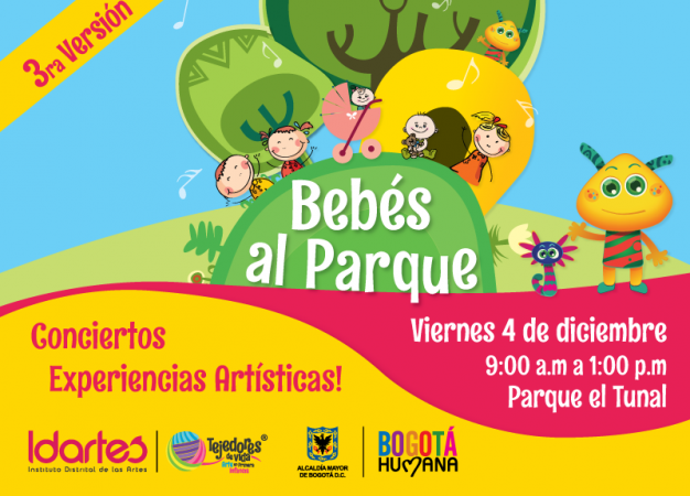'Bebés al Parque' en su tercera versión, será un evento ideal para que los niños y niñas de la primera infancia de Bogotá y sus familias, gocen de un ambiente propicio para vivenciar, cultivar y potenciar el arte en su vida, con prácticas artísticas renovadoras que fomentan el desarrollo humano integral desde la creación, la libertad, el juego, el diálogo, la participación, el disfrute, el reconocimiento de la diversidad y de las múltiples estéticas que habitan en el mundo de las niñas y los niños de 0 a 5 años.
