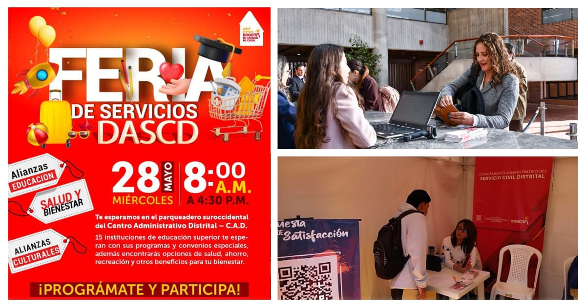 ¡Aquí sí Pasa! En Bogotá, mi Ciudad, mi Casa, trabajamos por el bienestar de quienes hacen parte de la Administración distrital y por. eso, este 28 de mayo de 2025, se llevará a cabo la Feria de Servicios DASCD, un espacio creado para que el talento humano del Distrito acceda a 20 alianzas en educación, salud y vivienda.