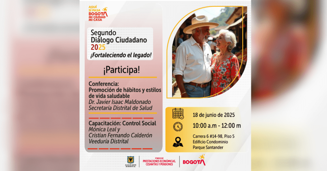 ¡En Bogotá, mi Ciudad, mi Casa ayudamos a nuestros pensionados! El Fondo de Prestaciones Económicas, Cesantías y Pensiones (FONCEP) invita a sus pensionadas y pensionados a participar en el Segundo Diálogo Ciudadano 2025, un espacio de encuentro y aprendizaje que se realizará el miércoles 18 de junio de 2025, de 10:00 a.m. a 12:00 m, en el Auditorio FONCEP (5to piso, Carrera 6 No. 14 - 98, Edificio Condominio Santander).