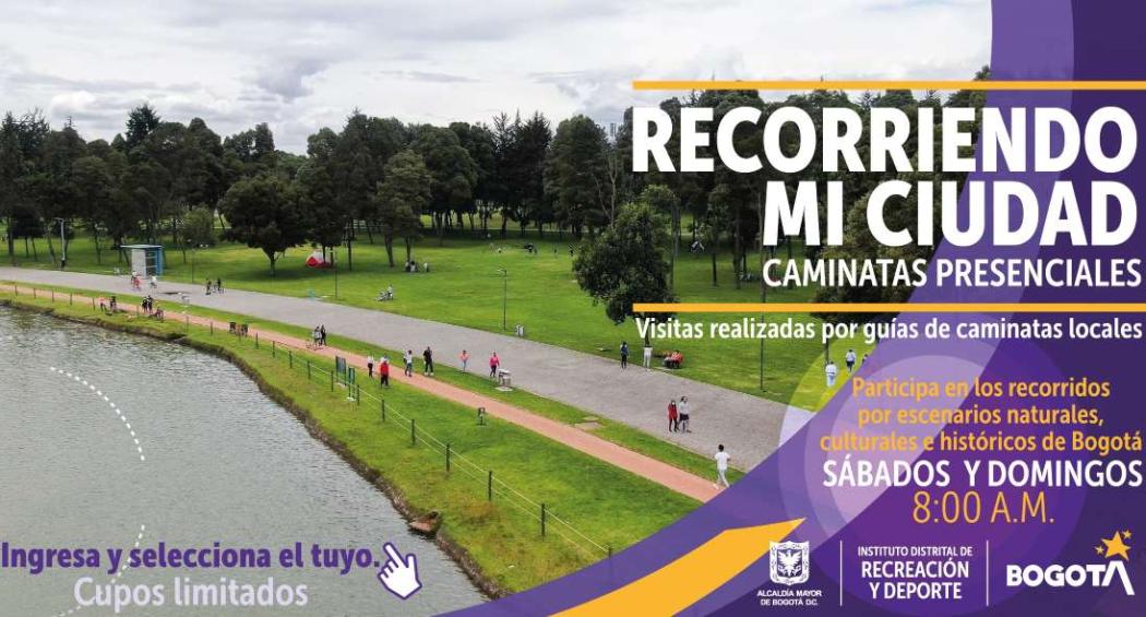El Instituto Distrital de Recreación y Deporte (IDRD) invita a la ciudadanía a participar de las caminatas presenciales que serán realizadas por profesionales en turismo local, quienes desarrollarán temáticas de reconocimiento del territorio en los espacios administrados por el IDRD, escenarios naturales, culturales e históricos del distrito capital.