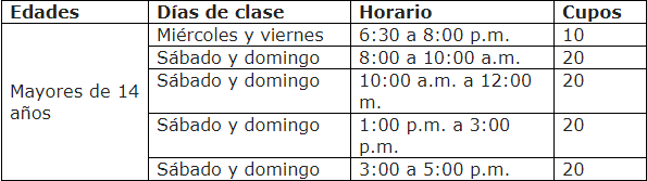 Asistir de martes a viernes en uno de los siguientes horarios: 8:00 a.m., 10:00 a.m., 12:30 p.m., 2:30 p.m., 4:30 p.m. y 6:30 p.m.