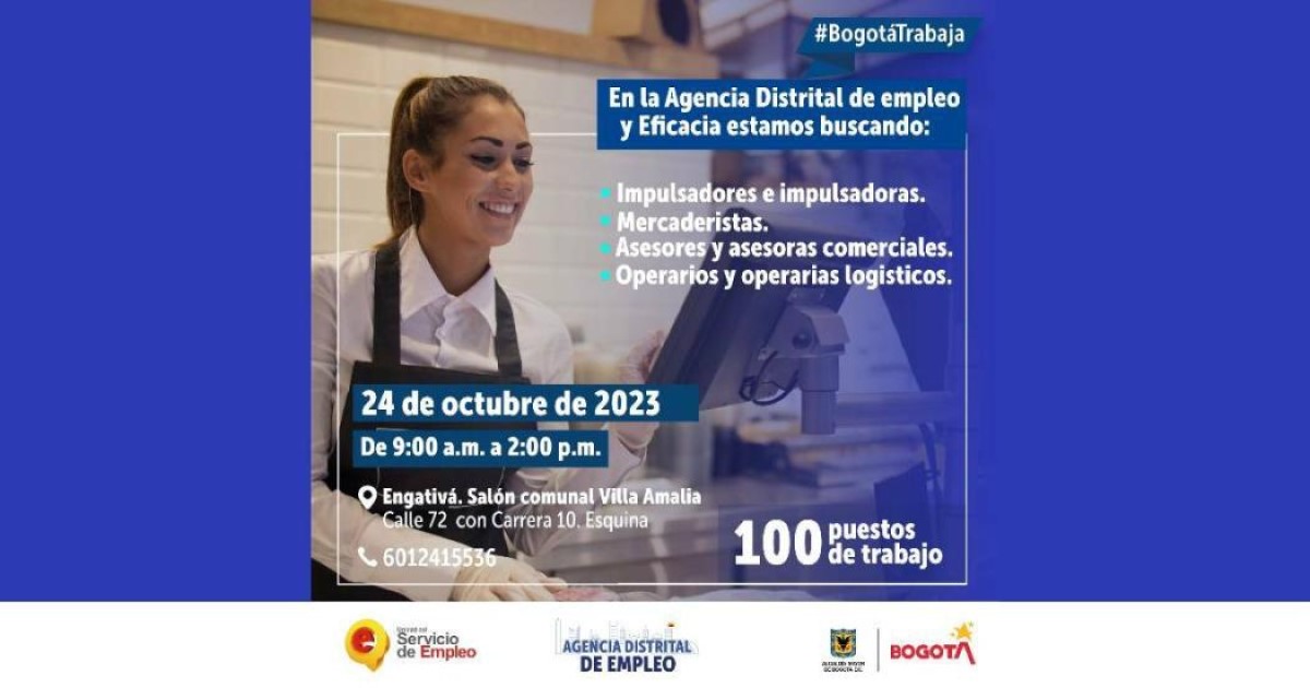 La Secretaría de Desarrollo Económico te invita a asistir a la feria de empleo impulsada por la Agencia Distrital de Empleo este martes 24 de octubre en la localidad de Engativá.