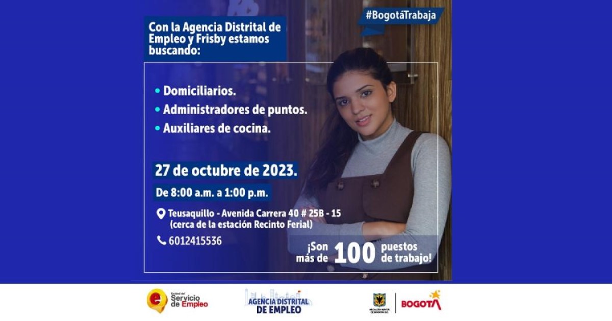A través de la Agencia Distrital de Empleo, la Secretaría de Desarrollo Económico invita a la ciudadanía que esté en búsqueda de trabajo a acercarse a esta convocatorias de empleo.