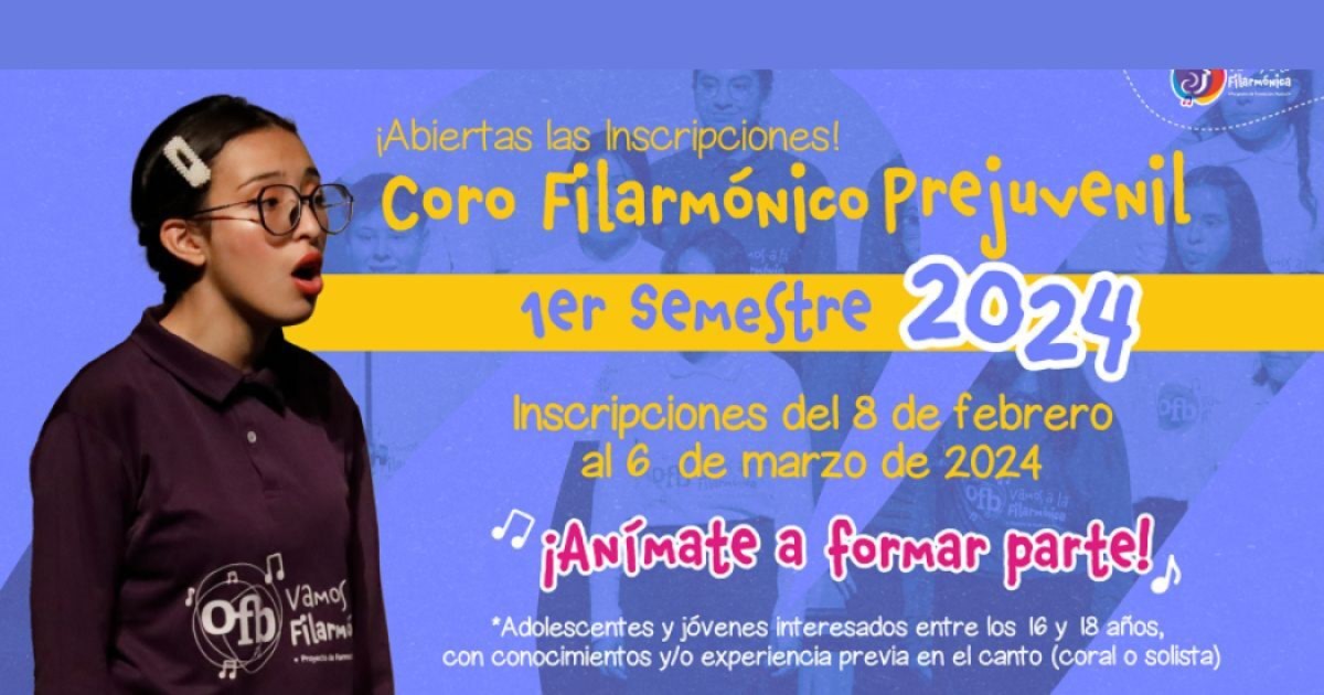 El Proyecto de Formación Musical de la Orquesta Filarmónica de Bogotá-OFB invita a participar a los jóvenes interesados, con conocimientos y/o experiencia previa en el canto (coral o solista), a participar en el Coro Filarmónico Prejuvenil.