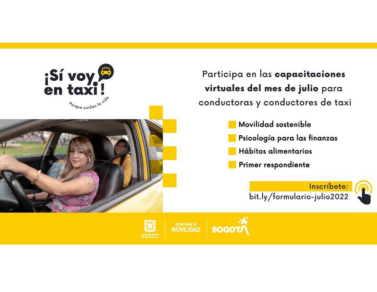 Si deseas participar en las capacitaciones virtuales de julio dirigidas a conductoras y conductores de taxi de Bogotá, debes:
