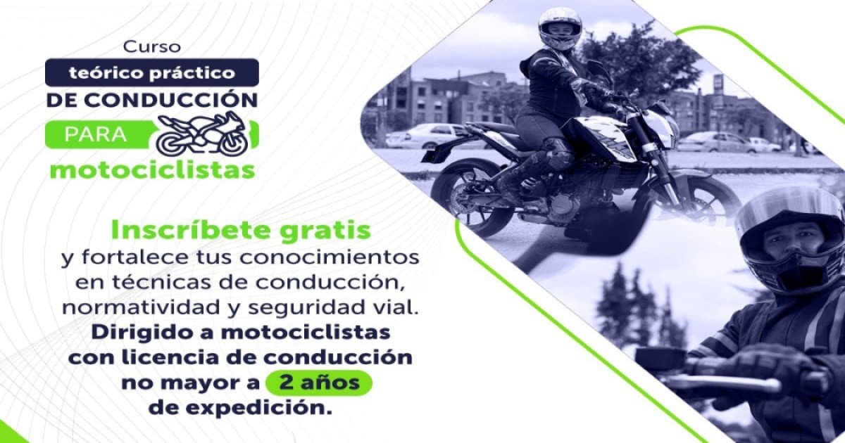La Secretaría Distrital de Movilidad -SDM- y la Policía de Tránsito de Bogotá, invitan a los y las motociclistas de la ciudad, con licencia de conducción no mayor a dos años, a participar de manera gratuita en el curso teórico práctico de conducción, que se adelantará este sábado 27 de abril de 2024.