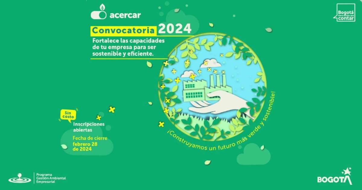 Si buscas fortalecer las capacidades de tu empresa en materia ambiental y sostenible, te invitamos a postularte a la Convocatoria Acercar 2024, con el que puedes recibir acompañamiento de la Secretaría de Ambiente al respecto.