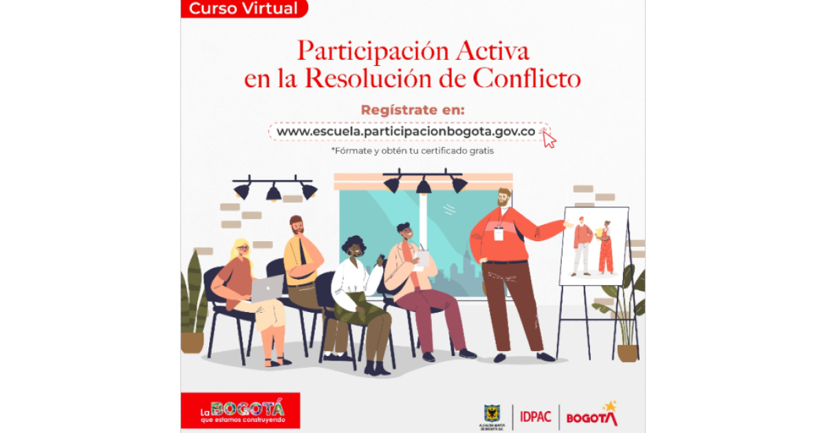 La Escuela de la Participación del Instituto Distrital de la Participación y Acción Comunal (IDPAC) abrió las inscripciones para tres cursos virtuales y gratuitos con el propósito de brindar a la ciudadanía herramientas teóricas, metodológicas y de acción relacionadas con organizaciones comunales, Derechos Humanos DD.HH. y resolución de conflictos.