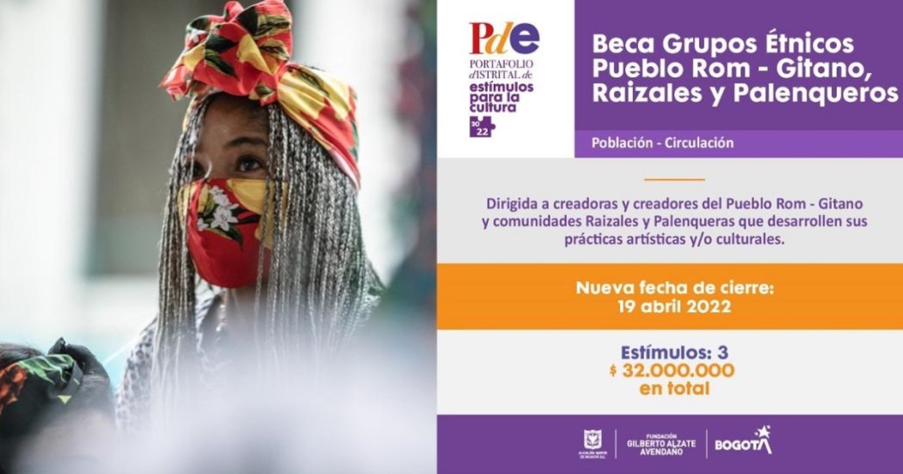 La convocatoria, que estará hasta el 19 de abril, busca promover, fortalecer y visibilizar experiencias de inclusión social y de ejercicio de derechos sociales y culturales logrados mediante prácticas artísticas y/o culturales del Pueblo Rom - Gitano y comunidades Raizales y Palenqueras en Los Mártires, Santa Fe y La Candelaria.