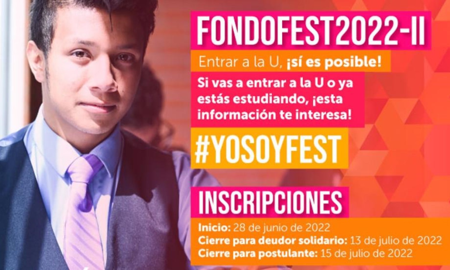 Las y los interesados podrán inscribir a su deudor solidario (persona natural que respalda la obligación crediticia adquirida por el beneficiario), antes del próximo 13 de julio e inscribirse antes del 15 de julio en la página web , en la sección 'Educación Superior', 'Fondo de Educación Superior para Todos'.