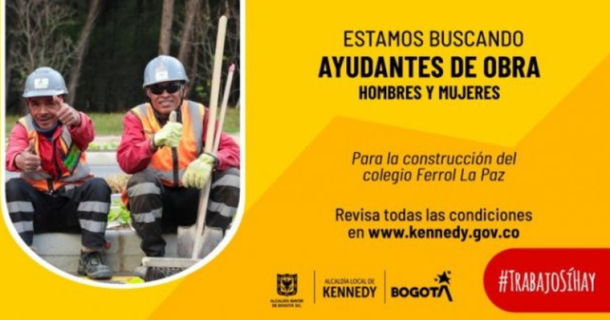 ¡Aprovecha esta nueva oportunidad para trabajar en Kennedy! Para la ejecución de las obras de construcción y cerramiento de la nueva planta física del colegio Ferrol La Paz, ubicado en el barrio Marsella.